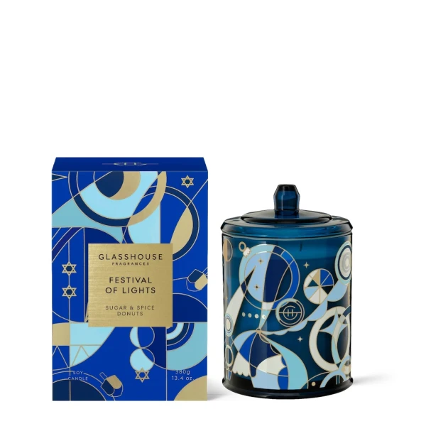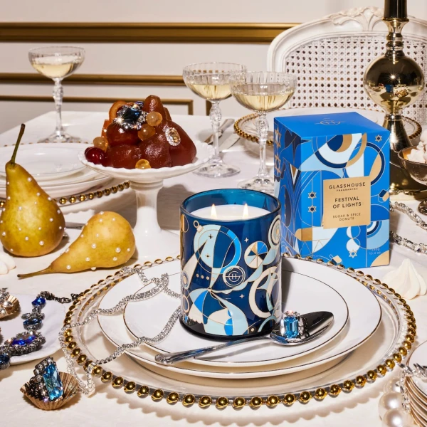 Glasshouse Fragrances' Festival Of Lights Candles come in a decorative vessel with illustrations by Eirian Chapman, that will bring extra joy to the Festive season. Sugar & Spice Donuts scent fills your home with the bright and joyful blessings of light that dance like stars in the darkest winter night. As seen in Allure.