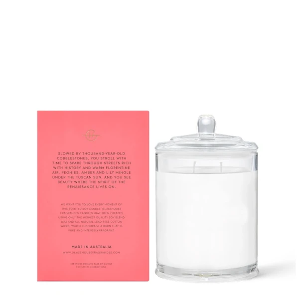 Glasshouse's Florence Forever Candles are for the true aficionado, this is a striking scent-cessory. A flower market under the Tuscan sun. You pick up peonies, jasmine and a hint of peach.