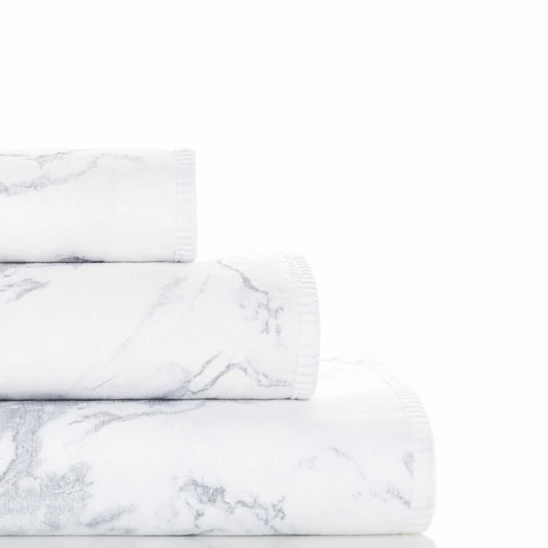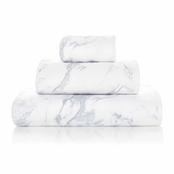 Mabel is very innovative towel.  It is a double sided terry towel with the front side a marble like print on white.  Difficult to describe -- the back is a traditional terry while the front (marble pattern) is a smooth cotton like finish. Unusual and contemporary -- the guest towel seems to be a favorite for everyone who comes in our store.