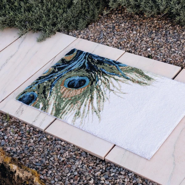 Graccioza's Pavone is a unique bath rug with a 3D design effect is made with GIZA Egyptian cotton fibers, guaranteeing extraordinary softness, volume and excellent absorption capacity. Its silicone backing makes it highly safe and its antibacterial treatment inhibits the appearance of fungi and bacteria. The Seashell bath rug allows you to customize its size. 100% Egyptian Cotton GIZA.
