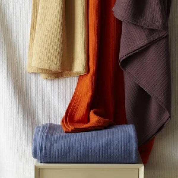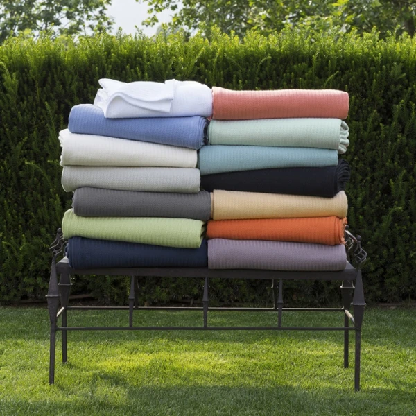 Cozy and comforting. Simple and charming, this 100% cotton blanket, woven in stripes for classic look, is a perfect accent for the bed. Blanket has a plain hem for understated elegance.  Soft and warm, this is a blanket for all seasons.