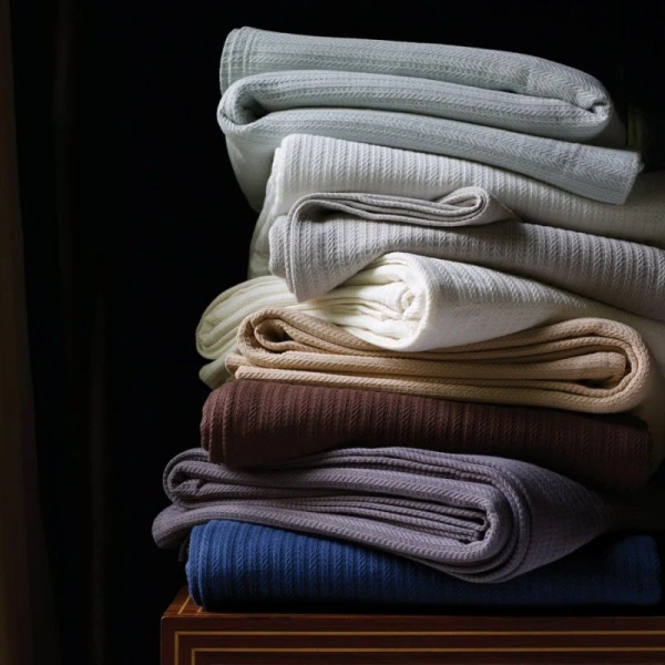 Cozy and comforting. Simple and charming, this 100% cotton blanket, woven in stripes for classic look, is a perfect accent for the bed. Blanket has a plain hem for understated elegance.  Soft and warm, this is a blanket for all seasons.