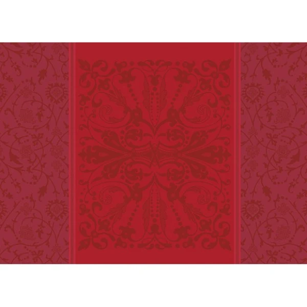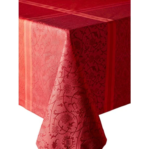 Cassandre Grenat (Red) Tablecloth, Green Sweet Stain Resistant Cotton, Mitred