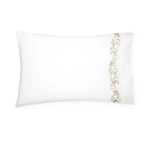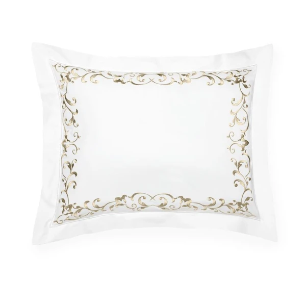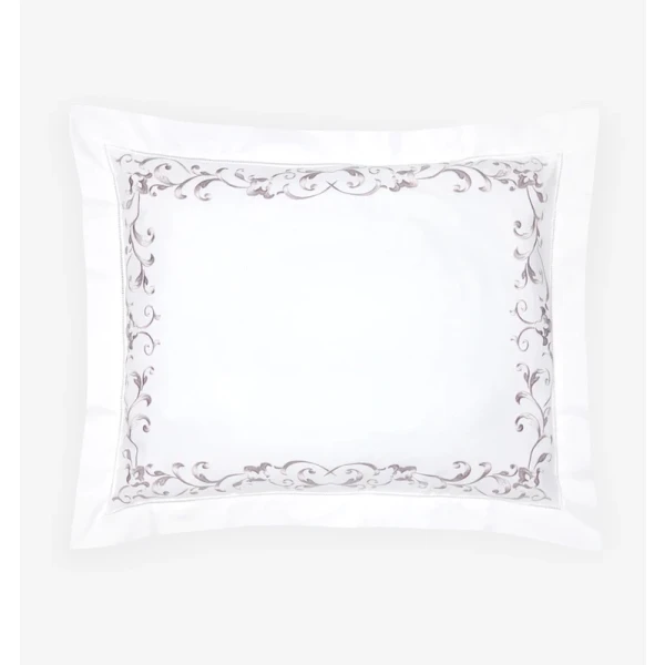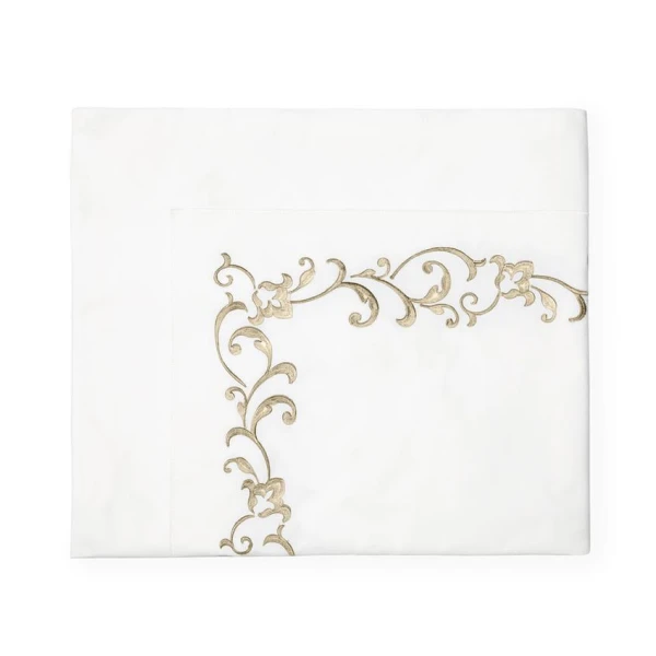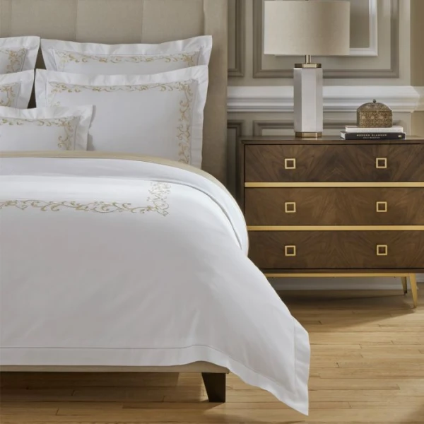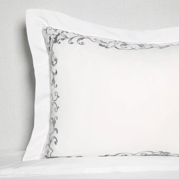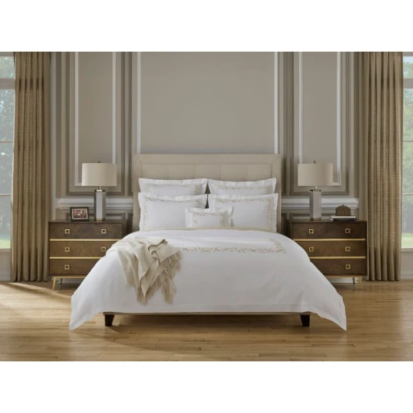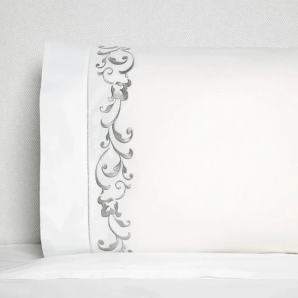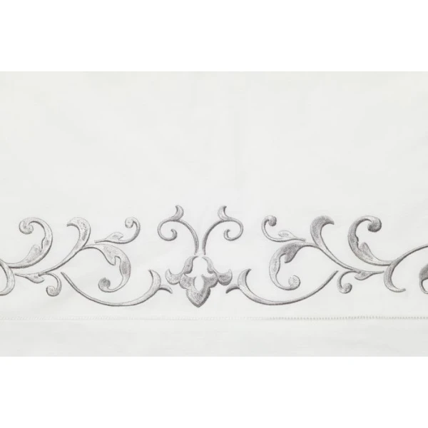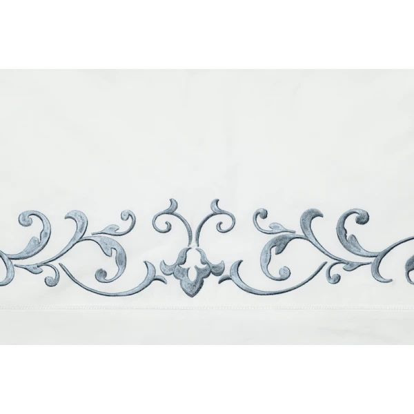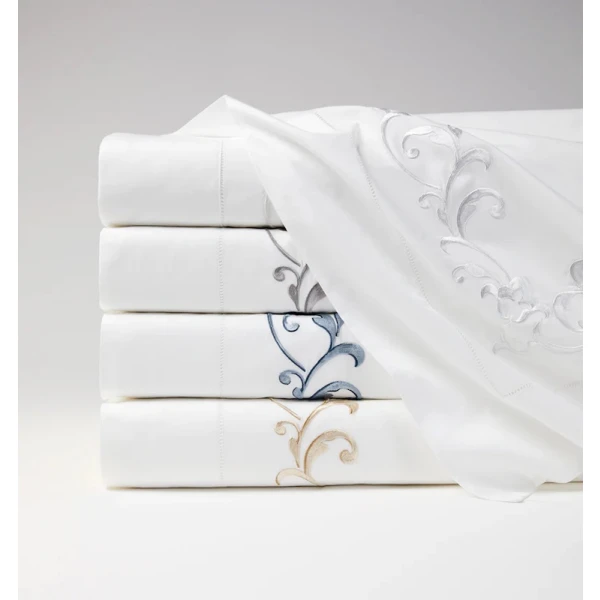 The Griante bedding Collection is inspired by the time of the Renaissance.  The style is similar as it is as classic, chic and very luxurious.  This timeless look is due to its exquisite ornamental embroidery on white sheeting. 100% extra long staple cotton.  Hemstitch Hem.  From Italy.  *we recommend using the Celeste fitted sheets to complete your bedding