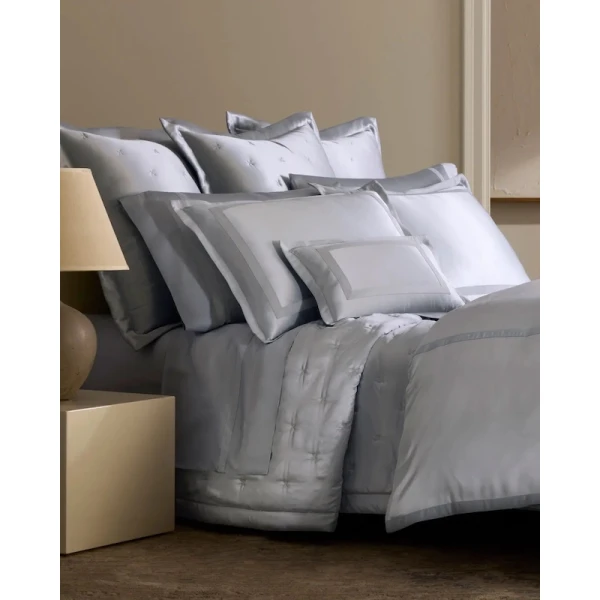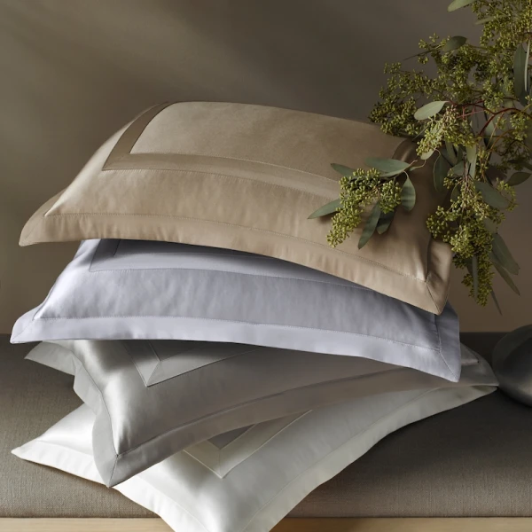 Home Treasures' Lustro Silk is modern and exquisite. Minimal tailoring is at the heart of Lustro's modern style: this 19 momme Mulberry silk is finished with a reverse 1" flange and coordinating reverse 1" applique inset. Available in four colors. 100% mulberry silk. Made in USA. OEKO-TEX Certified.