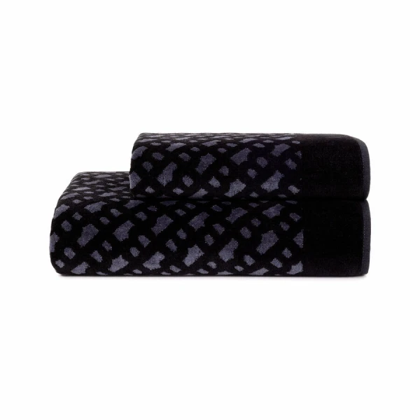 Hugo Boss B Monogram Towels are velour Jacquard towels imprinted with the B Monogram. Velvet jacquard two-tone towels. 100% organic cotton, 450 gsm.
