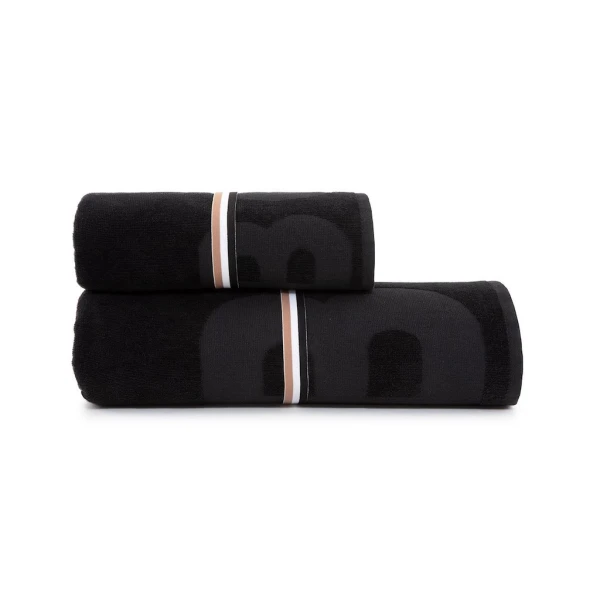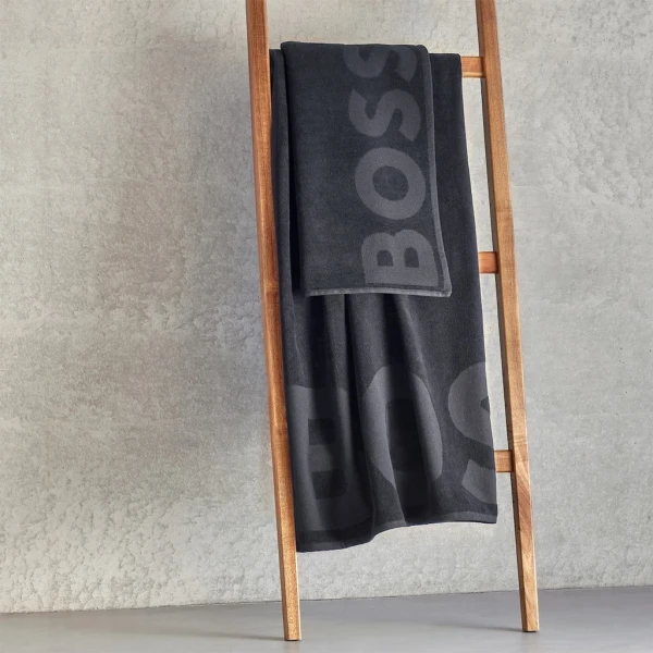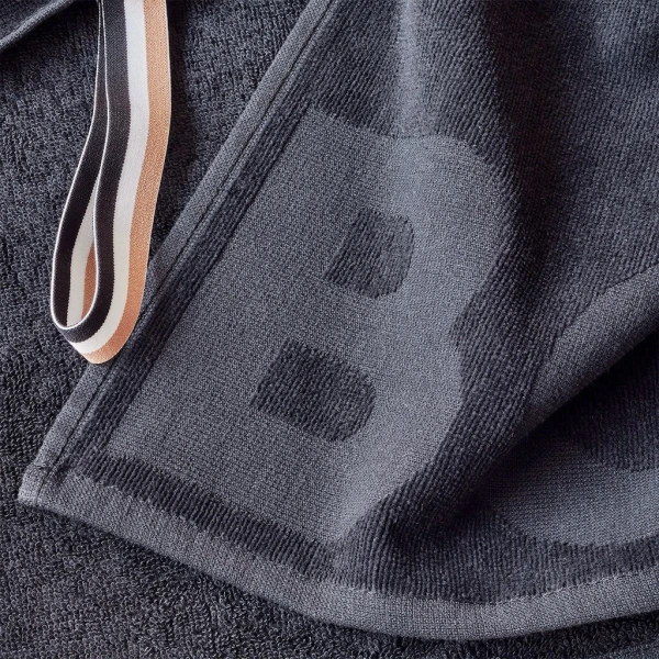 Hugo Boss Border Logo Towels has its modernized branding boldly carved into the design along the edge. Made from pure, soft cotton, the towels are fitted with a tricolor elastic which doubles as a hanging loop and a tie for when you want to keep the towel rolled up. 100% cotton, 350 gsm. Made in Turkey.