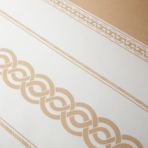 Yves Delorme's Joyau Counterpane/Bed Runner evokes the timeless luxury of printed gilded bronze ornamental links on white silk. Padding is 100% polyester. 100% silk. Made in Turkey.