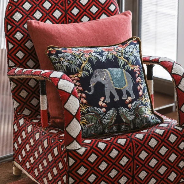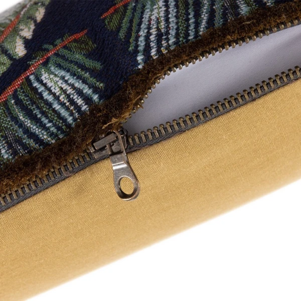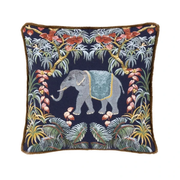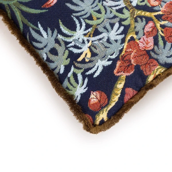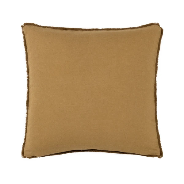Yves Delorme's Hannibal Decorative Pillow in Nuit has a tapestry front and a plain bronze color in back with fringed finish. Bottom zip fastening. Composition: 74% Cotton, 12% Acrylic, 6% Polyamide, 5% Polyester, 3% Viscose. Back: 100% Linen. Made in Belgium.