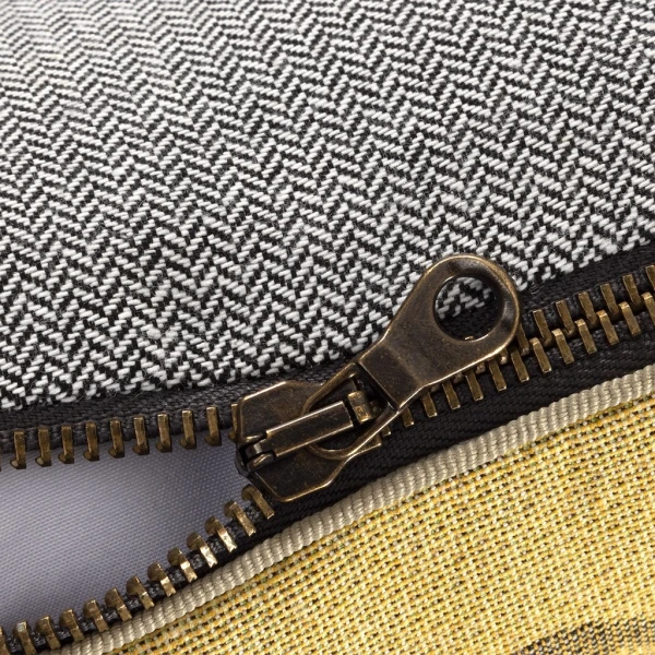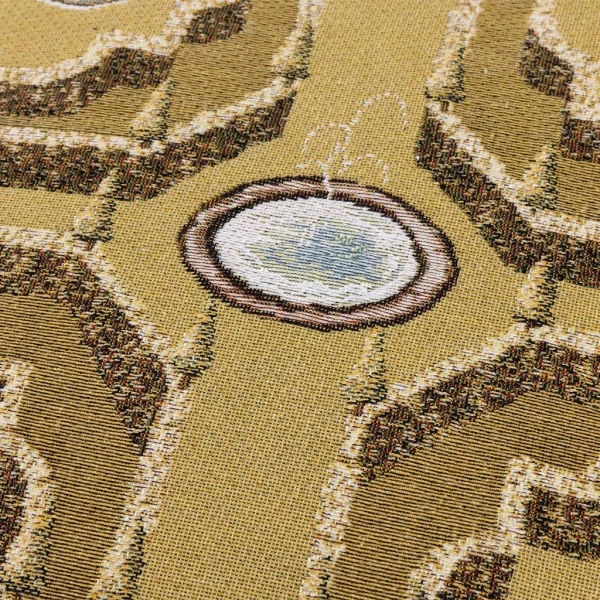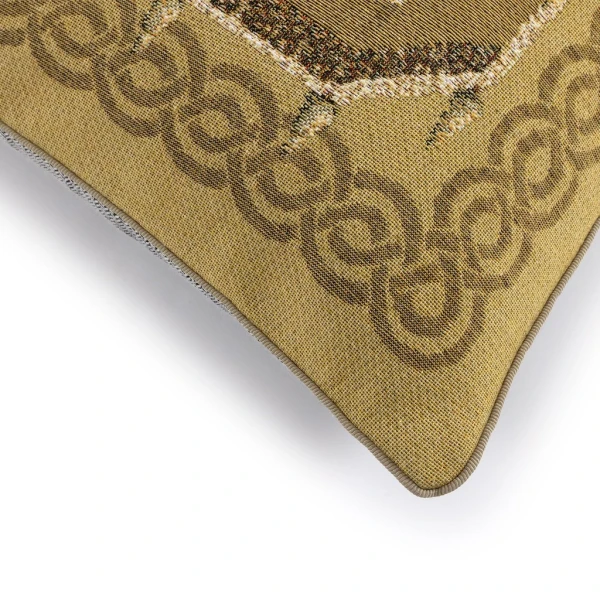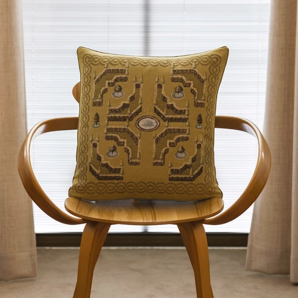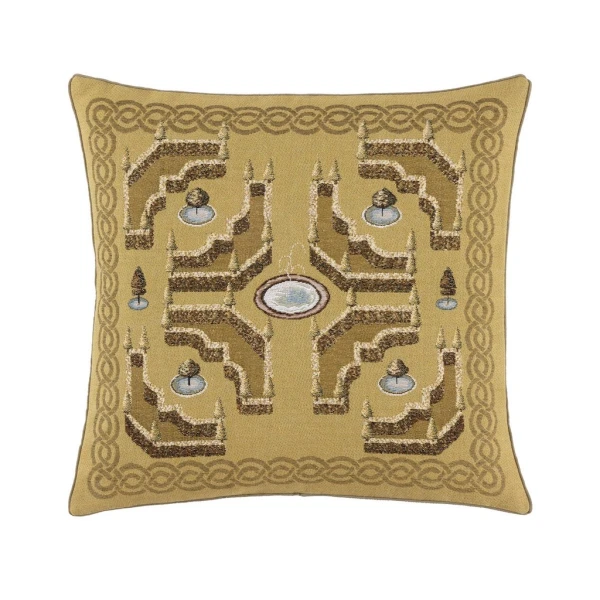 Yves Delorme's Ã€ la Française decorative pillow in Mordore combines art and refinement, inspired by the splendor of French gardens. The tapestry's front panel finely depicts the symmetrical patterns and ordering characteristic of French gardens, inviting nature and its elegance into your living space. The back of the cushion cover features a two-tone chevron pattern, synonymous with modernity and sophistication. Tapestry front. Two-tone chevron pattern on back. Piping finish. Bottom zipper fastening. Composition: 74% Cotton, 12% Acrylic, 6% Polyamide, 5% Polyester, 3% Viscose. Back: 61% Cotton, 39% Polyester. Cotton tapestry designed in France and made in their partner workshops in Belgium.