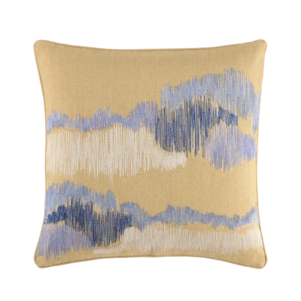 Yves Delorme's Horizons decorative pillow is stunning. The design has landscape of vapors and diluted inks where time has stopped. Front embroidered, back in solid color. Piped finish. Zipper closure at bottom. Designed to complement the bedding of the same name. 95/5 feather/down insert is included and may ship separately. 100% linen. 18" x 18".