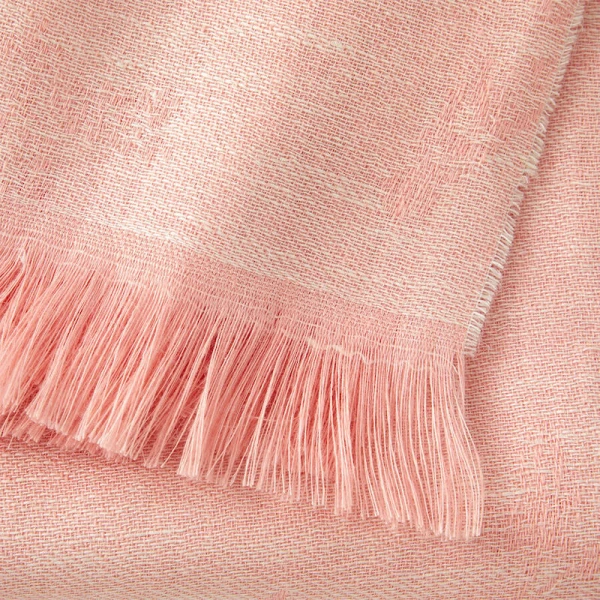 Yves Delorme Naiades Throw is a coral colored jacquard fabric with fringe finish that is the perfect accompaniment to the bedding collection of the same name. 100% linen.