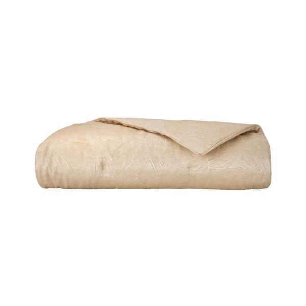 Yves Delorme Ombree Counterpane (Footquilt) is quilted front and back. The counterpane combines the nobility of linen with the finesse of silk, offering a silky, elegant feel. Its textured beige creates a soft, elegant atmosphere, adding a touch of natural charm to your bedroom. 40% silk, 38% linen, 22% cotton. Quilted bed runner. Jacquard weave on front and back. Padding is 100% polyester. Piped finish.
