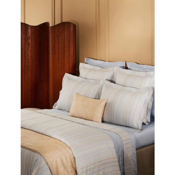 Yves Delorme's Ombrée decorative pillow combines the natural softness of linen with the delicacy of silk, offering a luxurious feel. The textured beige creates an elegant, soothing ambience, ideal for enhancing any interior.