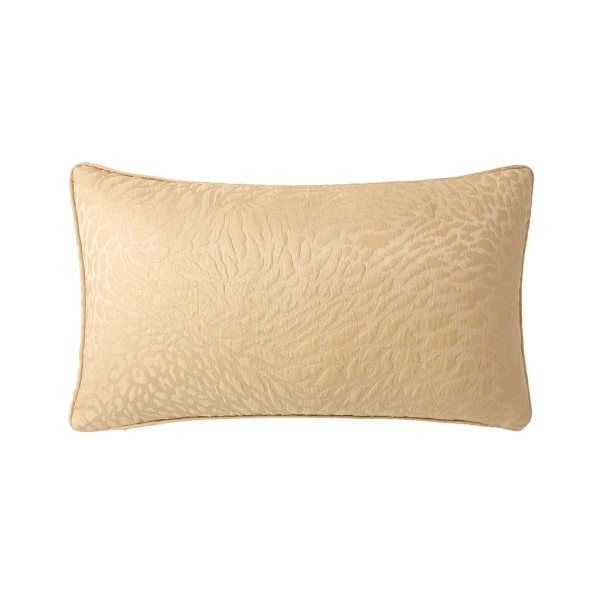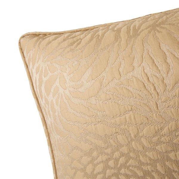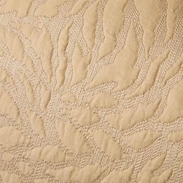 Yves Delorme's Souvenir Coverlet and Pillow in Dune has a wonderful look that is versatile. It is a textured fabric that adds dimension and character to any bed. Finished with 1 inch hem and mitered corners. 64% cotton / 24% acrylic / 12% silk. Created in France and made in our partner workshops in Italy.