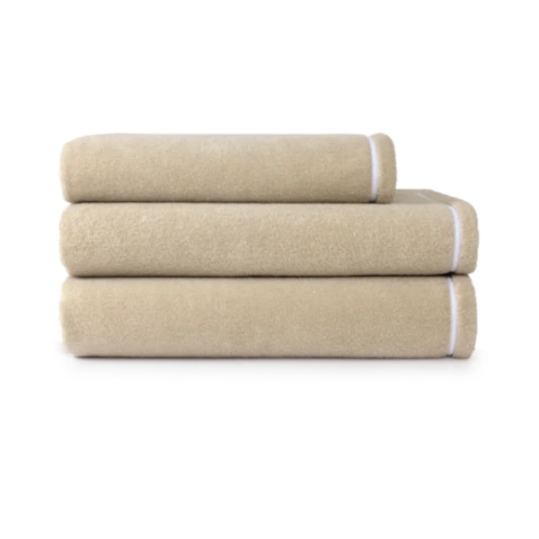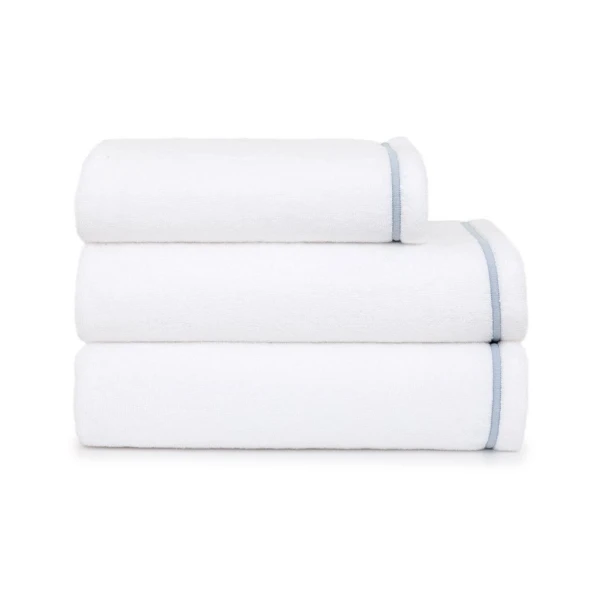Yves Delorme Couture's Duetto Bath Towels are made of 550 g/m cotton, a very beautiful silky and absorbent sponge. Its festoon finish and trendy colors will dress your bathroom with style and elegance. Folded edge. 100% cotton sponge, 550 g/m. Made in France.