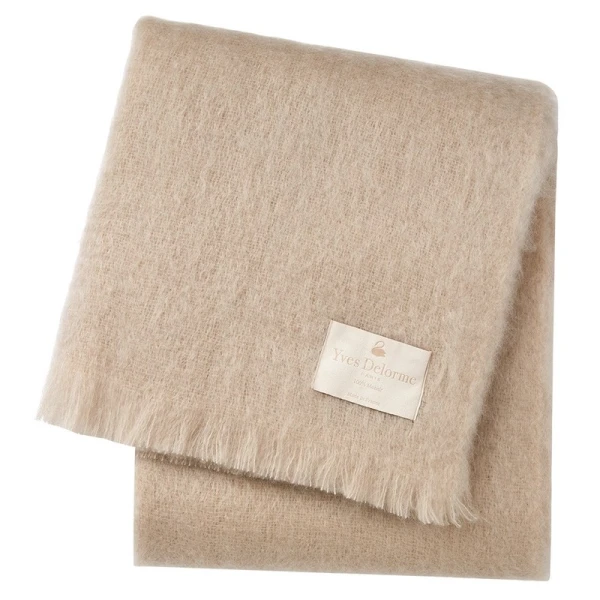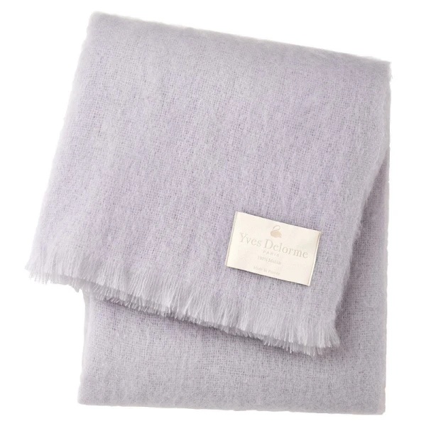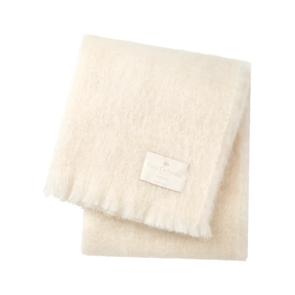 Yves Delorme Mohair Throw is one of our favorites.  We love to put this throw on anything and everything for a fun textural element. 100% mohair wool. Frayed fringe finish.  Made in France.
