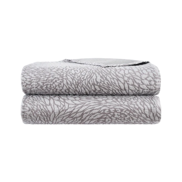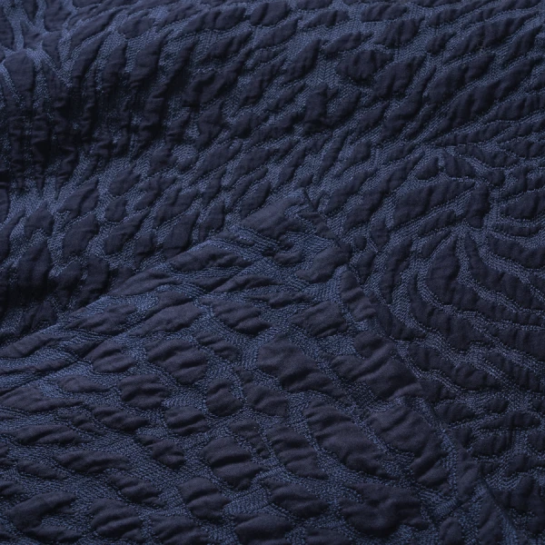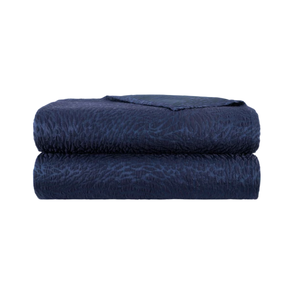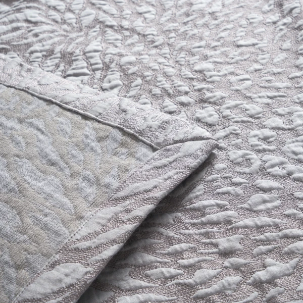Yves Delorme's Souvenir Coverlet has a wonderful look that is versatile.  It is a textured fabric that adds dimension and character to any bed. Finished with 1 inch hem and mitered corners. 64% cotton / 24% acrylic / 12% silk.