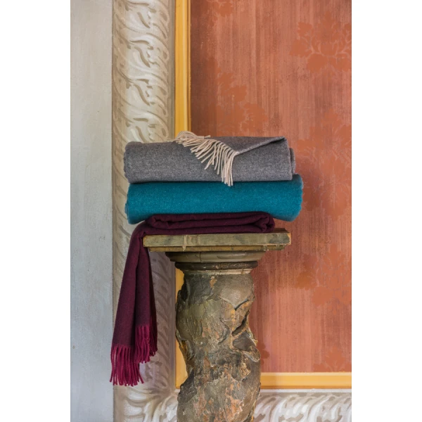 Iosis X Yves Delorme's Club Throw has two shades of threads that create a caviar effect from each variation. Throw, fringe finish. 51” x 67”. Made in Lithuania