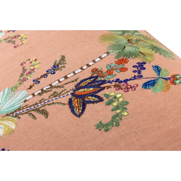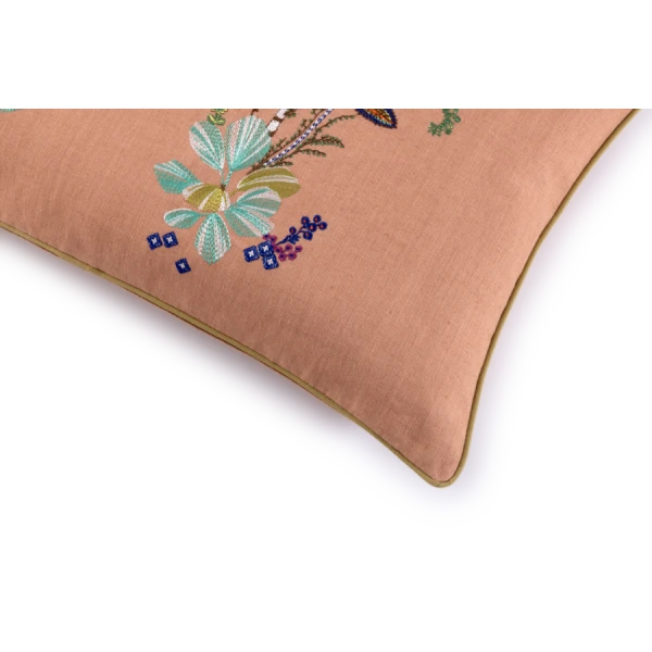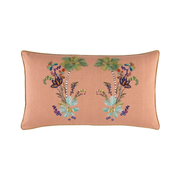 Yves Delorme's Jardins Decorative PiIlow is a great way to add a focal point and a pop of color to your bed or favorite chair. Cushion cover. Front embroidered, back in solid color. Piped finish. Zipper closure at bottom. 100% linen. 13" x 22". Made in India.