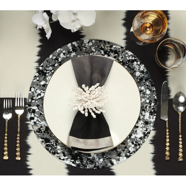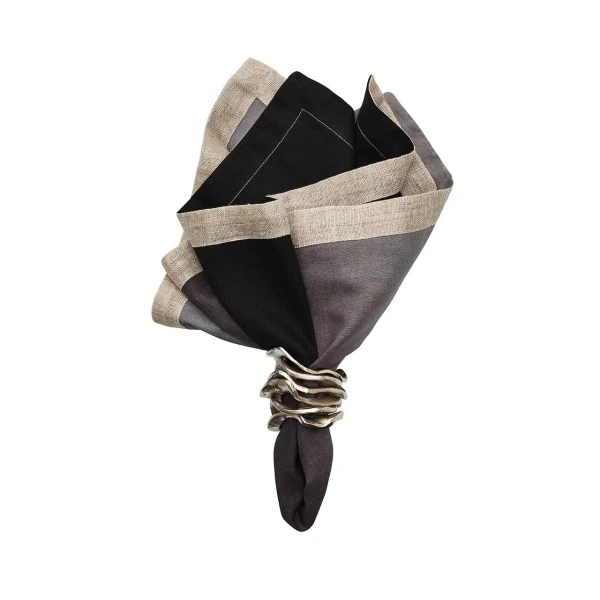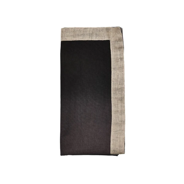 Kim Seybert's Dip Dye Napkins offer a display of ombre gradation from grey to black, adding a subtle elegance to the refined linen napkin. This stunning color combination complements any table. Use for an elegant New Year's Eve dinner or a casual Halloween event. These linen napkins are hand-dipped and dyed and accented with a luxurious metallic foil border.  100% linen