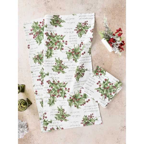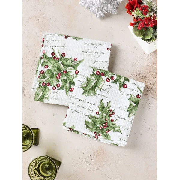 April Cornell's Holly Song in Ecru Tea Towel is so cheerful. We call them hand towels, dish cloths or tea towels, these uniquely charming textiles deliver a delightful splash of color and texture to the heart of your kitchen. Art is rarely (if ever) this practical, and our curated cotton weaves are tailor made for soaking up all of life's little messes!  Lovely lyrical sentiments penned in April's inimitable style add a touch of whimsy and wonder to our signature Holly print on cotton.100% Cotton. Signature April Cornell print!