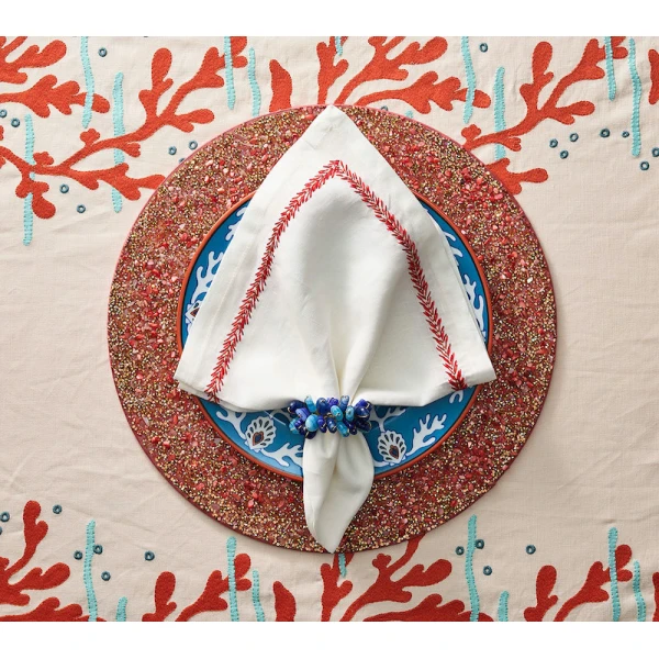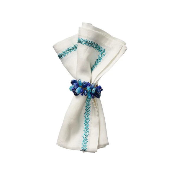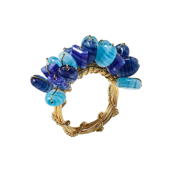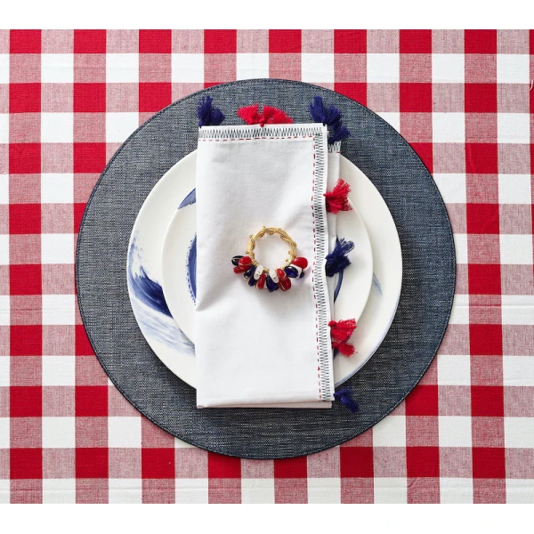 Kim Seybert's poppy Napkin rings are striated glass beads in striking patriotic colors are hand strung together. These are so fun and just say Go USA!  A true winner!