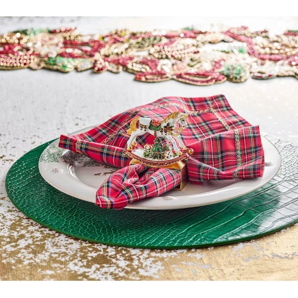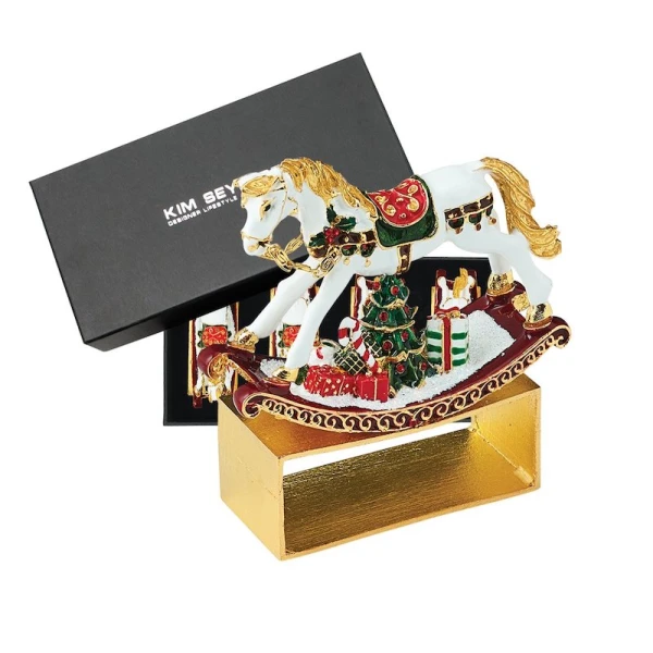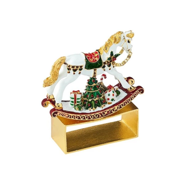 Kim Seybert's Rocking Horse Napkin Rings are dazzling for Christmas time entertaining! The enchanted cast, hand-enameled Rocking Horse Napkin Ring features classic childhood Christmas motifs. Take a walk down memory lane with the classic, white horse complete with a golden bridle and lavish saddle.