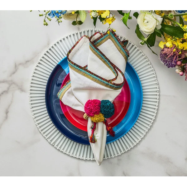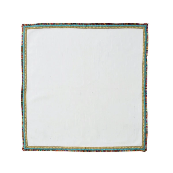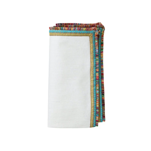 Kim Seybert's Spectrum Napkins offer every color imaginable. Inspired by beautiful threading work of Africa and Peru these embroidered napkins are sure to brighten anyones table and day! 80% cotton, 15% jute, 5% rayon.