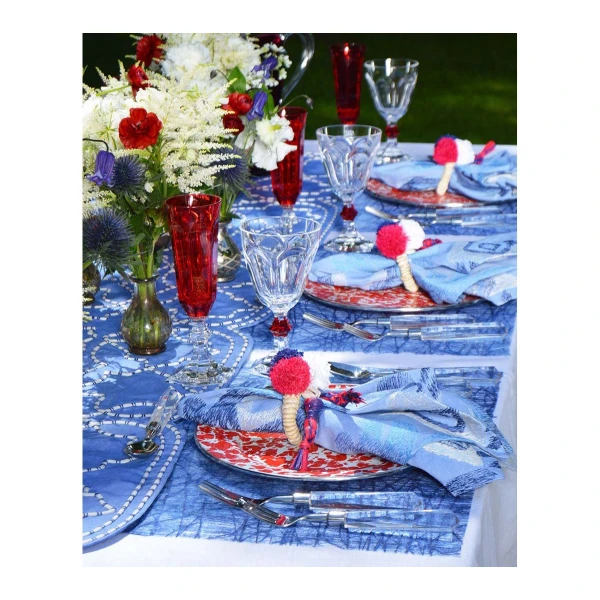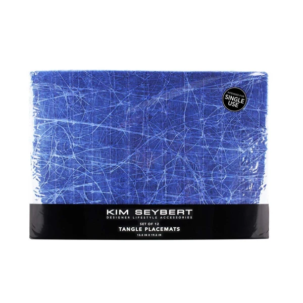 From  Kim Seybert -- the Tangle placemats in Royal come in a set of 12.  Made of a fibrous webbing on a translucent base, it lends tables an all natural felling.  Priced competitively with disposable paper placemats -- but not just a single use.