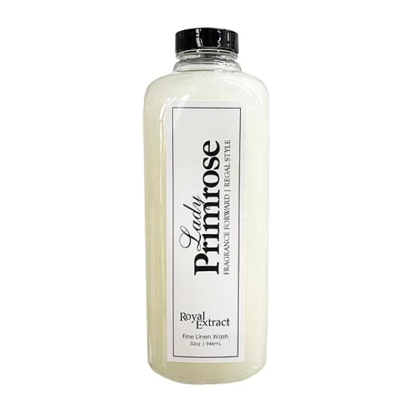 Lady Primrose Royal Extract Fine Linen Wash Laundry launders and cleans delicately infused with our Royal Extract scent. A spritz of Royal Extract Room & Linen Spray or a sprinkle of Royal Extract Dusting Silk Powder on your sheets will help capture a longer-lasting scent and a silky, satiny feel!