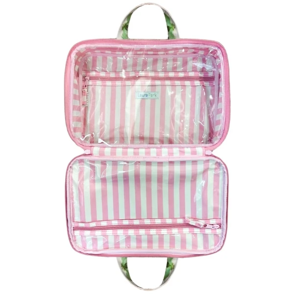 Laura Park Designs' Giverny Travel Cases are your new go-to beauty bag. Lined with a plastic interior to make minor spills no big deal. Designed to keep your essentials secure and accessible, these cases feature multiple zipper compartments tailored for all your travel needs. They are a fresh take on a travel essential! 100% Cotton.