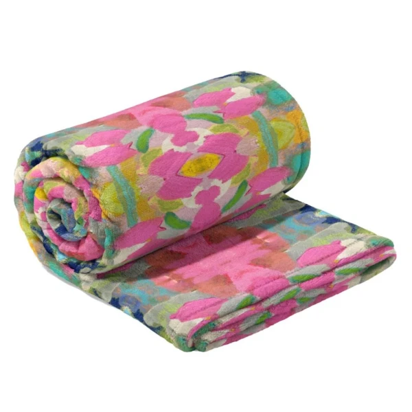 Laura Park's Pink Paradise Fleece Blanket will elevate your comfort and style with our Fleece Blankets. Unparalleled softness and a wide range of colors make these blankets the perfect addition to your bed, chair, or sofa. Cozy up in luxury and upgrade your space today! 100% flannel.