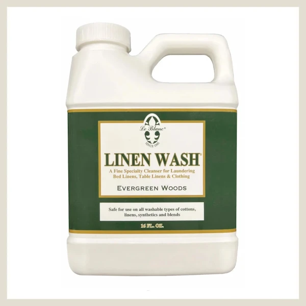 Many soaps and detergents contain harmful chemicals that can destroy fine fabrics, causing them to yellow and fall apart. Le Blanc Linen Wash will safely and effectively remove the most difficult stains from washable bed, bath and table linens as well as antique linens, colored linens, lace, quilts, 100% cottons, synthetics and blends. Linen wash is designed to work with cold water, contains no bleach, caustics, or phosphates, has a neutral pH and is biodegradable. With Linen Wash, your linens will come out beautifully clean, soft and delicately scented. 64 oz.