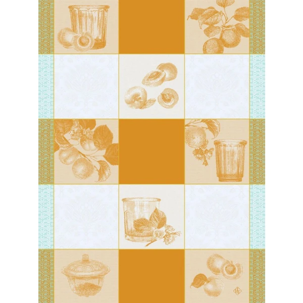 Le jacquard Francais Confitures Carreaux tea towel has wonderful renderings of apricots and jelly jars. To make it even more special they are divided by squares. Le Jacquard Français tea towels are a real charm in your kitchen! Thanks to their remarkable qualities, which they derive from the quality of their fibers, they will last for years. They have generous dimensions of 24 x 31" and a woven label to hang them easily in your kitchen.  100% long staple combed cotton. France.