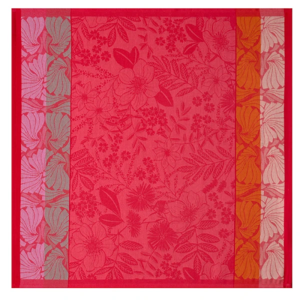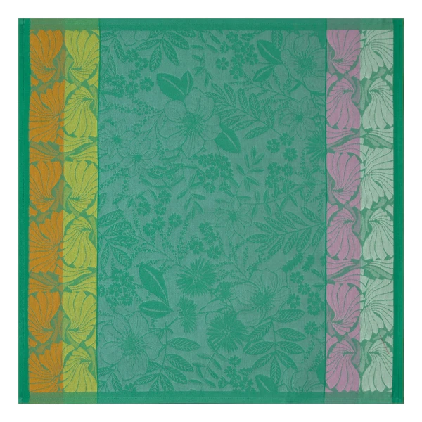 Le Jacquard Francais' Cottage table linens collection is joyful and optimistic.  The jacquard design resembles a carpet of seasonal flowers, with anemones, phlox and asters intertwined in a subtle geometric palm pattern. Embellish your table with splendor and add a touch of romance with Cottage. Le Jacquard Francais' products are made of long staple combed cotton to guarantee superior quality to our customers. The longest fibers produce a soft touch, perfectly smooth and resistant linen; the fineness of the combed yarns brings an incomparable brightness and precision to our designs. 100% Cotton.  Made in France.