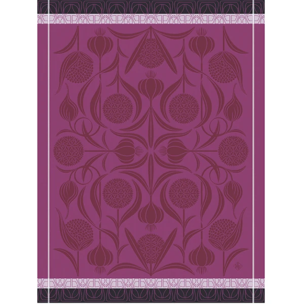 From Le Jacquard Francais, the L'Ail Rose tea towel is done in deep purple, and its design is representative of garlic and its blossoms. L'Ail is available in other colorways. LJF towels always add to the charm of your kitchen!