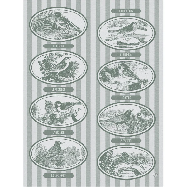 Le Jacquard Francais Melodies Pin tea towel has a wonderful variety of French Birds. From the finch to the warbler. Le Jacquard Français tea towels are a real charm in your kitchen!