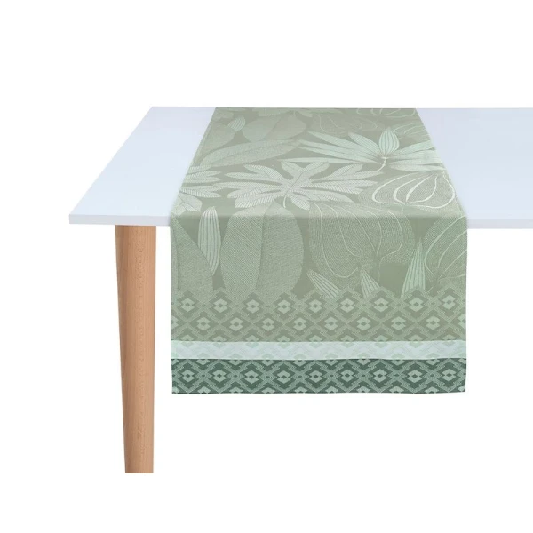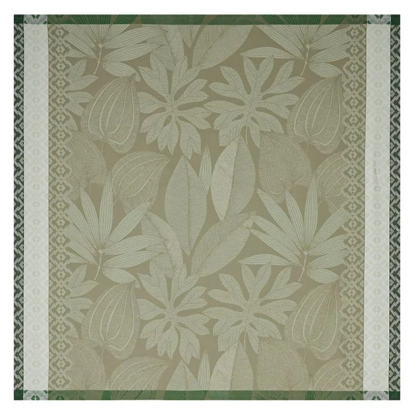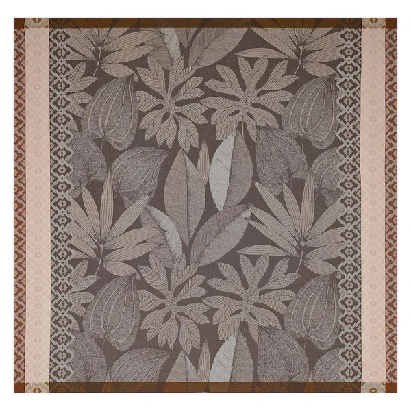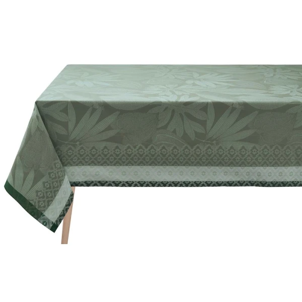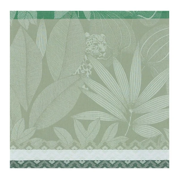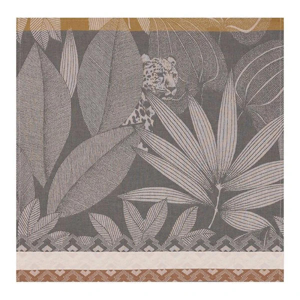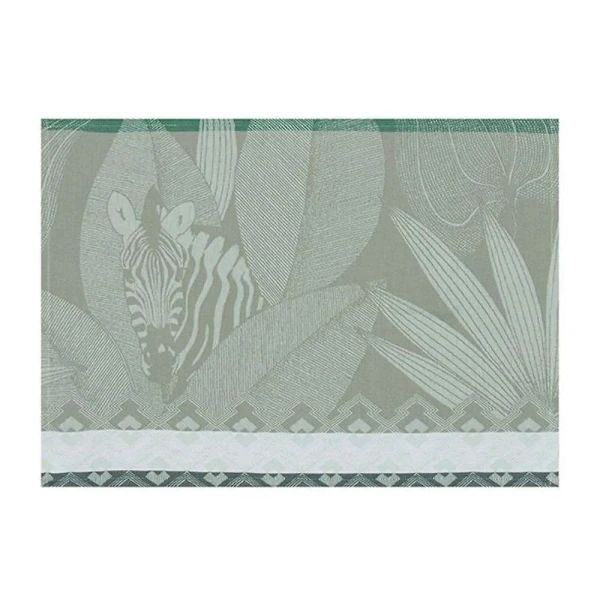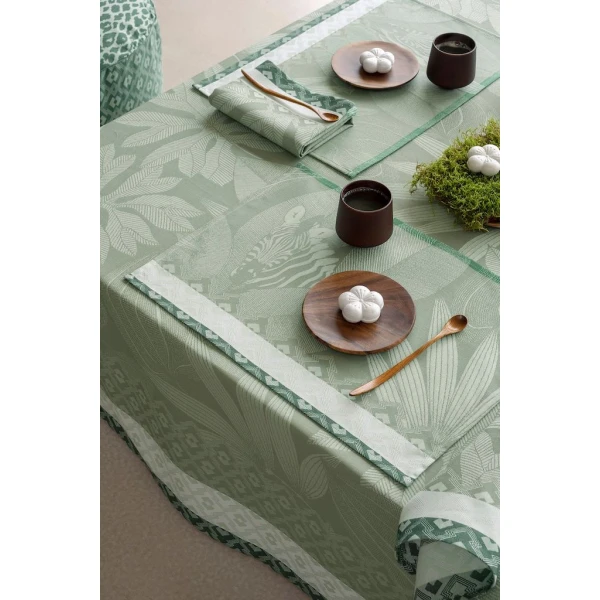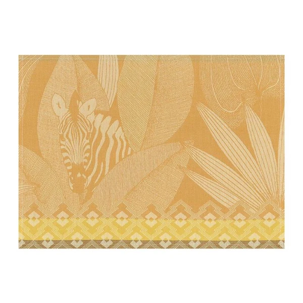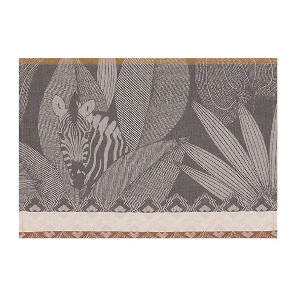 Le Jacquard Francais' Nature Sauvage table linens are a perfect touch of exotic.  The design consists of tropical leaves of different shapes and sizes with a tribal border.  The napkins have a leopard added amongst the flora and the placemats have a zebra.   Available in three colors.