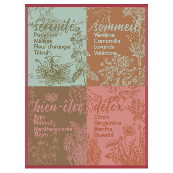 Le Jacquard Francais' Sérénités tea towels are all about your well being and achieving it through nature's bounty.  Reminding you of the little things like good sleep.  Softness and tranquility are the key words of our Sérénité collection!  Le Jacquard Français tea towels are a real charm in your kitchen!  Thanks to their remarkable qualities, which they derive from the quality of their fibers, they will last for years. They have generous dimensions of 24 x 31" and a woven label to hang them easily in your kitchen.  100% long staple combed cotton. France.