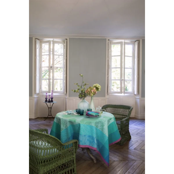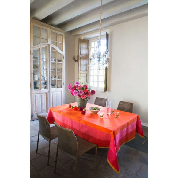 Le Jacquard Francais' Parfums de Bagatelle is a delicate design of dahlias on boldly colored stripes. 100% combed cotton jacquard woven.  Available in three color ways.