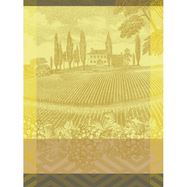Le Jacquard Francais' Vignoble tea towels in Yellow are in delightful colors. The design will transport you to the vineyards of France. 100% cotton. Size: 24 x 31". Made in France.