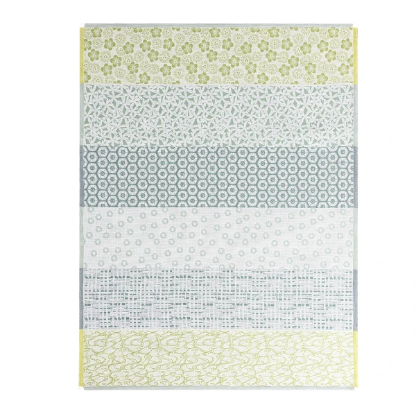 Le Jacquard Francais Wagara Celadon tea towel is in soft greens. The design is sweet and fresh with several different little patterns in broad stripes. This particular tea towel is reversible. Le Jacquard Français tea towels are a real charm in your kitchen!