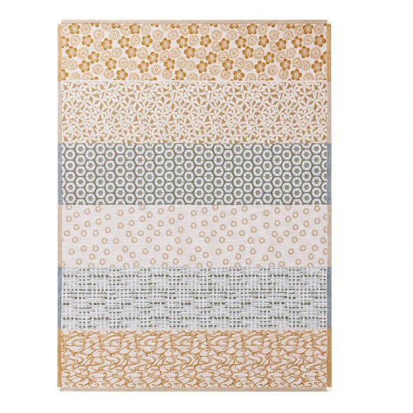 Le Jacquard Francais Wagara Gingembre tea towel is in soft browns. The design is sweet and fresh with several different little patterns in broad stripes. This particular tea towel is reversible. Le Jacquard Français tea towels are a real charm in your kitchen!