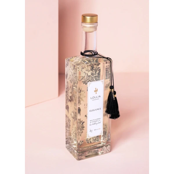 Lollia's Elegance Bubble Bath is infused with an enchanting mix of delicately sweet White Amber & Mirabelle essences paired with notes of bright, crisp greens in a lush blend of Olive Fruit & Avocado Oils. An enticingly extravagant experience that leaves skin feeling petal soft and moisturized. Bespoke black-and-white florals peek through this sophisticated and stylish bottle’s radiant glass. Adorned with silky black tassels and a touch of gold, this elegant piece is sure to be a tub-side treasure long after the bubbles float away. A classically iconic bottle steals the spotlight on your vanity and at any gift-giving occasion.