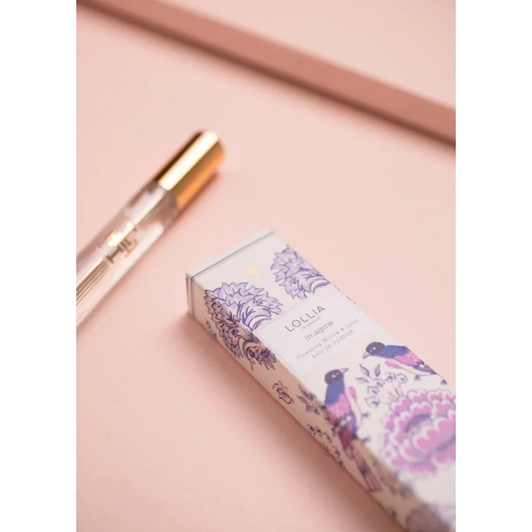 Lollia’s Imagine Travel Eau de Parfum is the quintessential purse-sized accessory for a touch of modern romance anytime, anywhere. Indulge in a luxurious moment wherever you might find yourself. A floral fragrance impression of the most beautiful day imaginable. Flowering Willow & Lotus float in then flutter away, leaving a trace of Orchid on their wings. Breezy Rice Flower and Coconut Milk mingle with dew drop notes of Mandarin and Jasmine petals in sun-kissed sophistication.