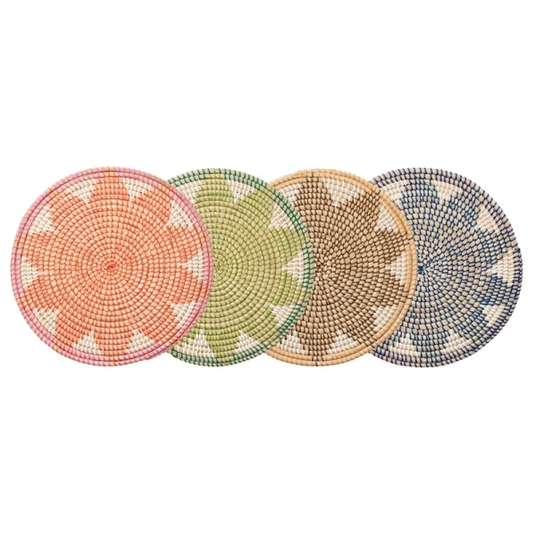 Kim Seybert's Majorelle Placemats blend natural mystique with modern style. Inspired by the iconic garden, each handcrafted piece showcases the rich texture of natural seagrass with sleek vinyl cords. Floral motifs and geometric echo the famed villa's tropical lushness and striking architecture, transforming your table into a work of art. 100% Polyurethane with PVC Backing.