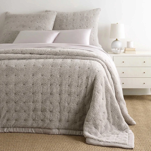 Pine Cone Hill's Marshmallow Fleece Quilt will help you fall into the deepest of billowy soft dreams with our cushy marshmallow fleecey puff.  Tufted at 4" intervals for max-air puffiness with a coordinating silken solid back, this makes a gorgeous layer for a winter white bed.  Reversible. Quilted. Top is ivory fleece with 3" Silken Solid Ivory border. Reverse is Silken Solid Ivory. 60% Polyester/40% Lyocell (TENCEL)