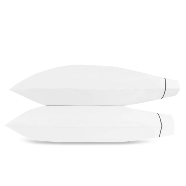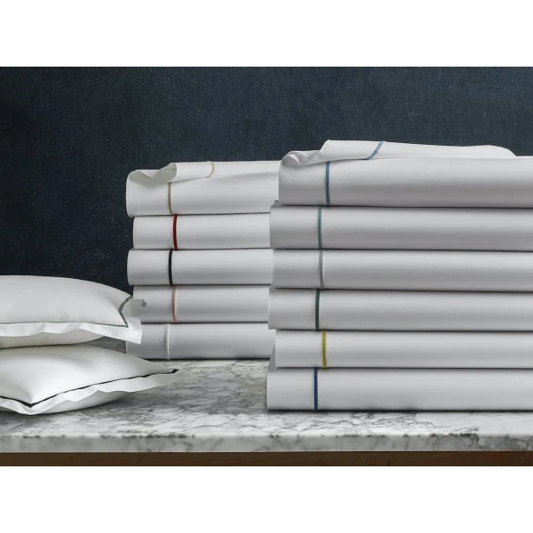 Matouk's Bergamo is made of Giza Egyptian 500 thread count cotton and finished with an elegant satin stitch.  This is the silkiest and lightest weight percale. Duvet covers and shams have a 1.75" flange comes in over a dozen color combinations.  Made in the USA of fabric from Italy.