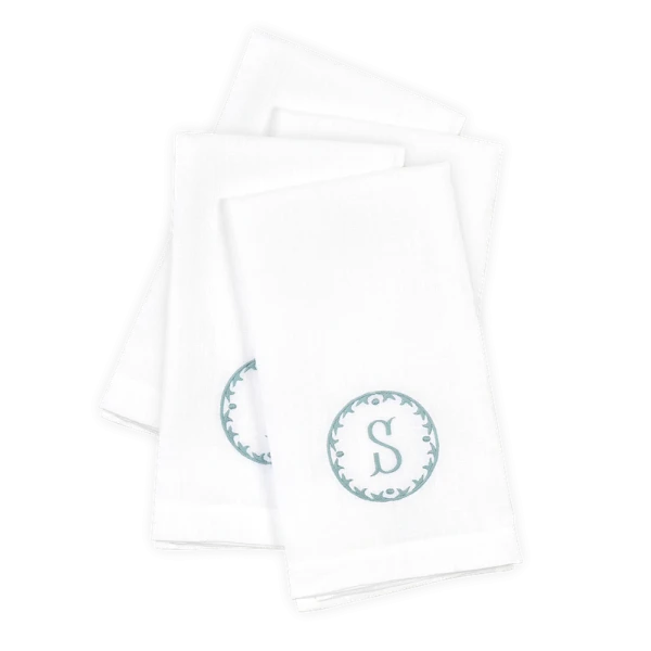 Sferra's Carta Guest towels are 100% linen with a medallion made of fishtail embroidery with your choice of monogram. Sold individually.